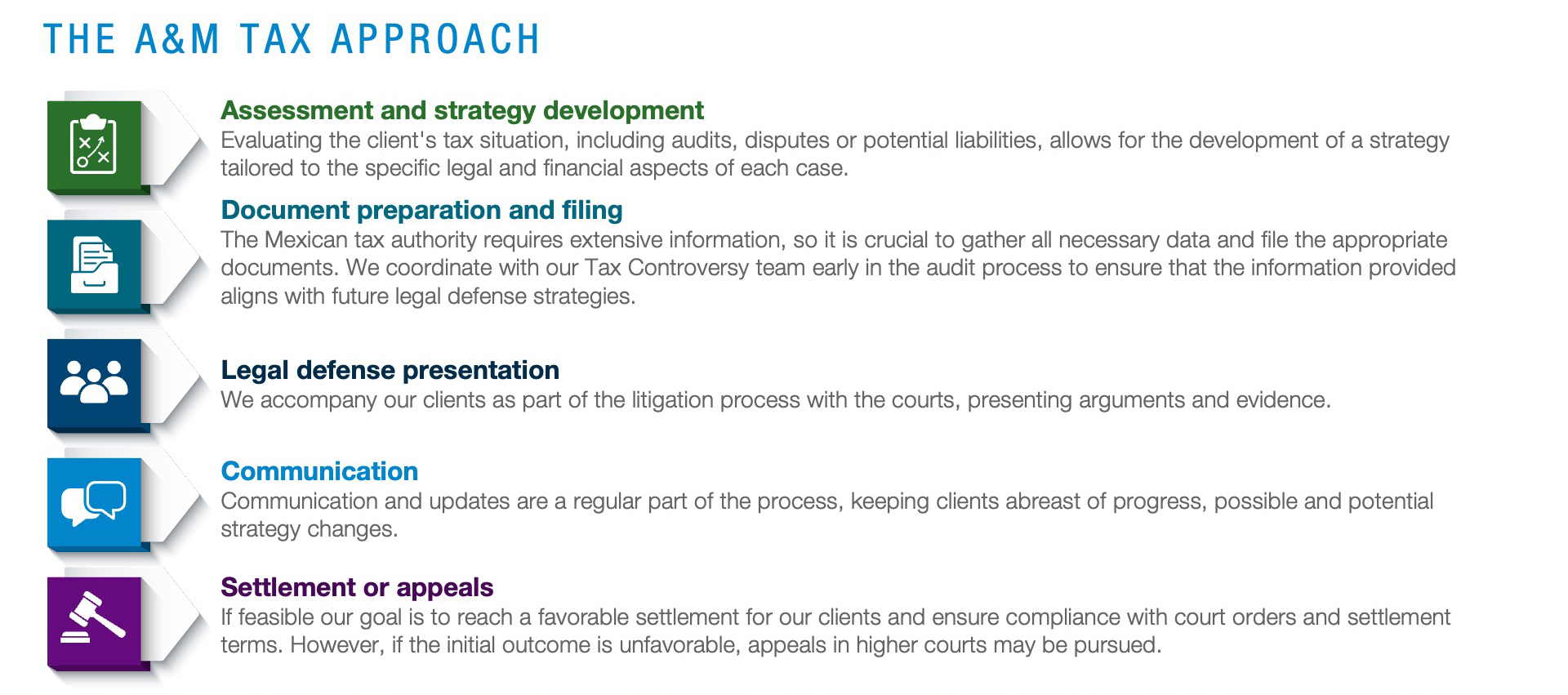 Navigating the dispute resolution mechanisms provided by Mexican law requires deep knowledge and experience in collaborative mediation to find solutions. A&M’s Tax Litigation Services team provides administrative tax litigation support to help clients with every step of the litigation process.