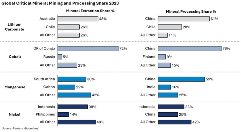 Supply chain considerations for automakers are conceptualized under a ‘mine to battery’ roadmap. In its current form, the mining and processing supply chain for lithium-ion batteries is heavily globalized: