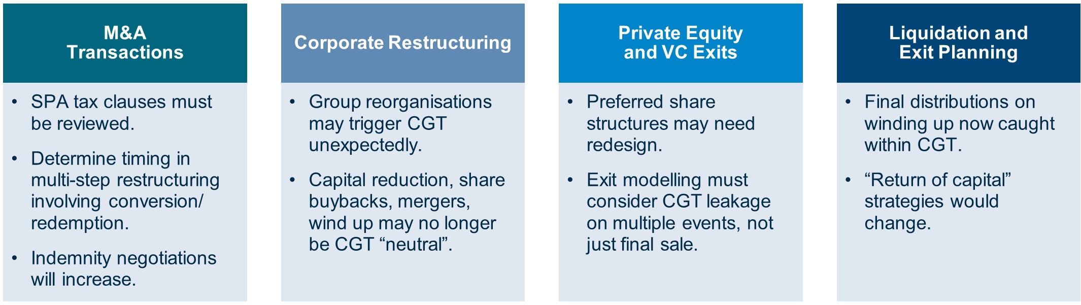It is crucial now to note that CGT in Malaysia is no longer limited to a traditional share “sale”. It can now be triggered by any event that results in the loss or cessation of share ownership, regardless of the legal form or mechanism. This clarification broadens the scope of CGT and is poised to reshape tax planning strategies for M&A transactions, corporate restructurings, and exit planning.