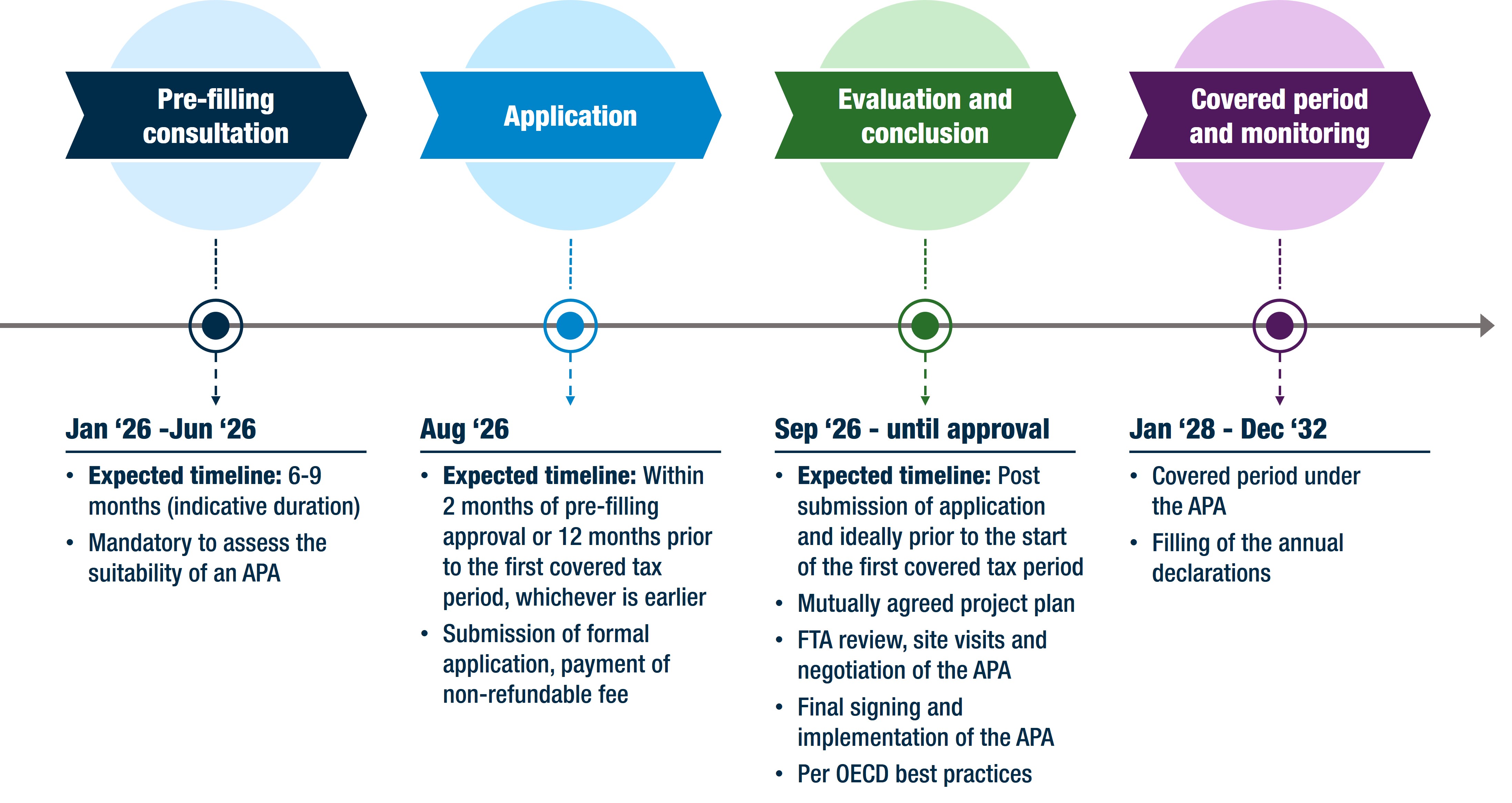Given the above process, the following is an illustrative timeline that could be feasible for FY28 (assuming a December to January year-end) as the first covered tax period under an APA in the UAE.