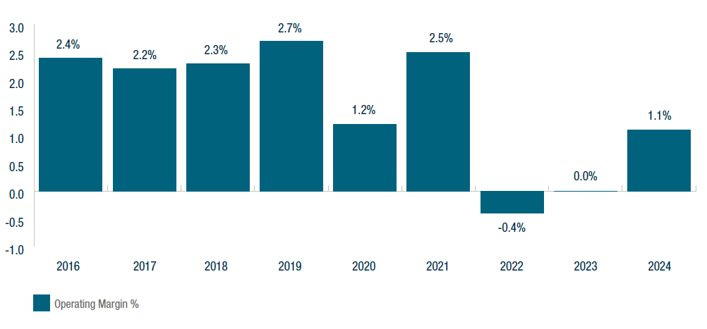 “U.S. Not-For-Profit Health Care System Median Financial Ratios—2024,” S&P Global, August 7, 2025, accessed August 13, 2025.